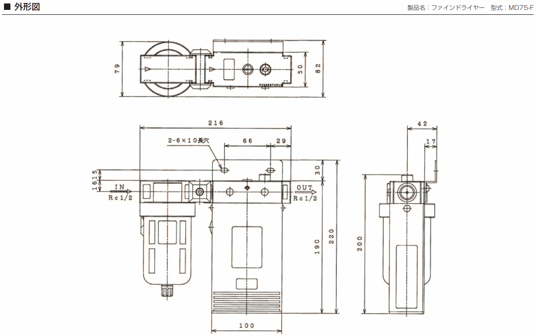- 小型で軽量・省スペース(当社冷凍式エアードライヤー比)